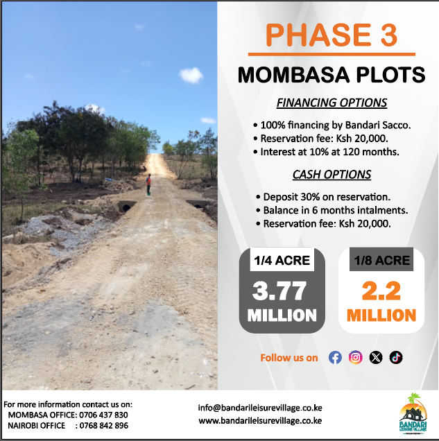 Bandari Leisure Village invites you to experience the epitome of luxury living in Mombasa. Situated just 6km from Nyali Centre, this exclusive residential development promises a lifestyle of comfort, sophistication, and tranquility